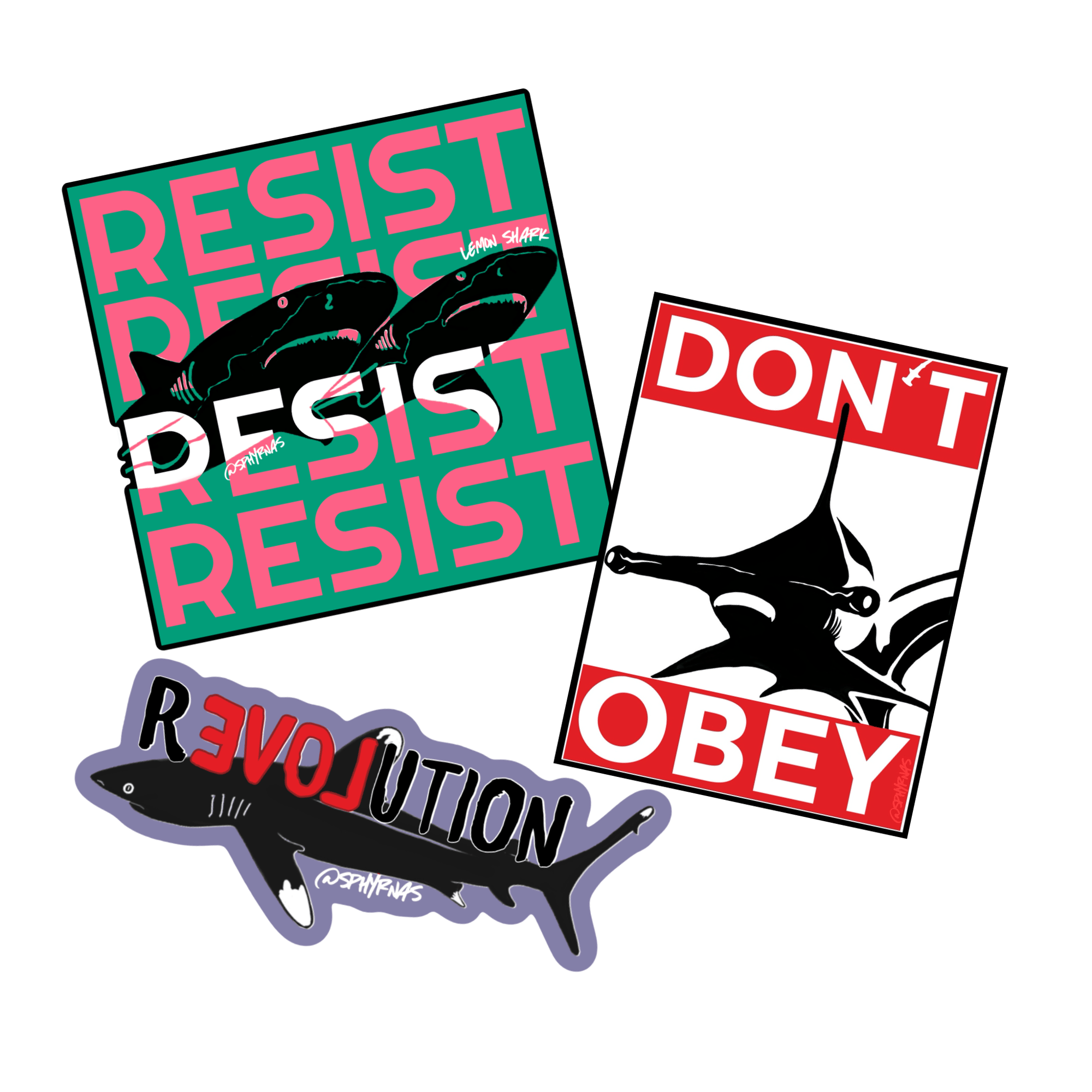 When they try to tell you what to hate and who to love... DON'T OBEY. Each of these designs are a small way you can show your shark love while standing up for people + planet. Get one or all three to keep or share with your crew.