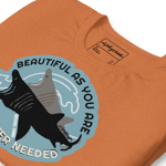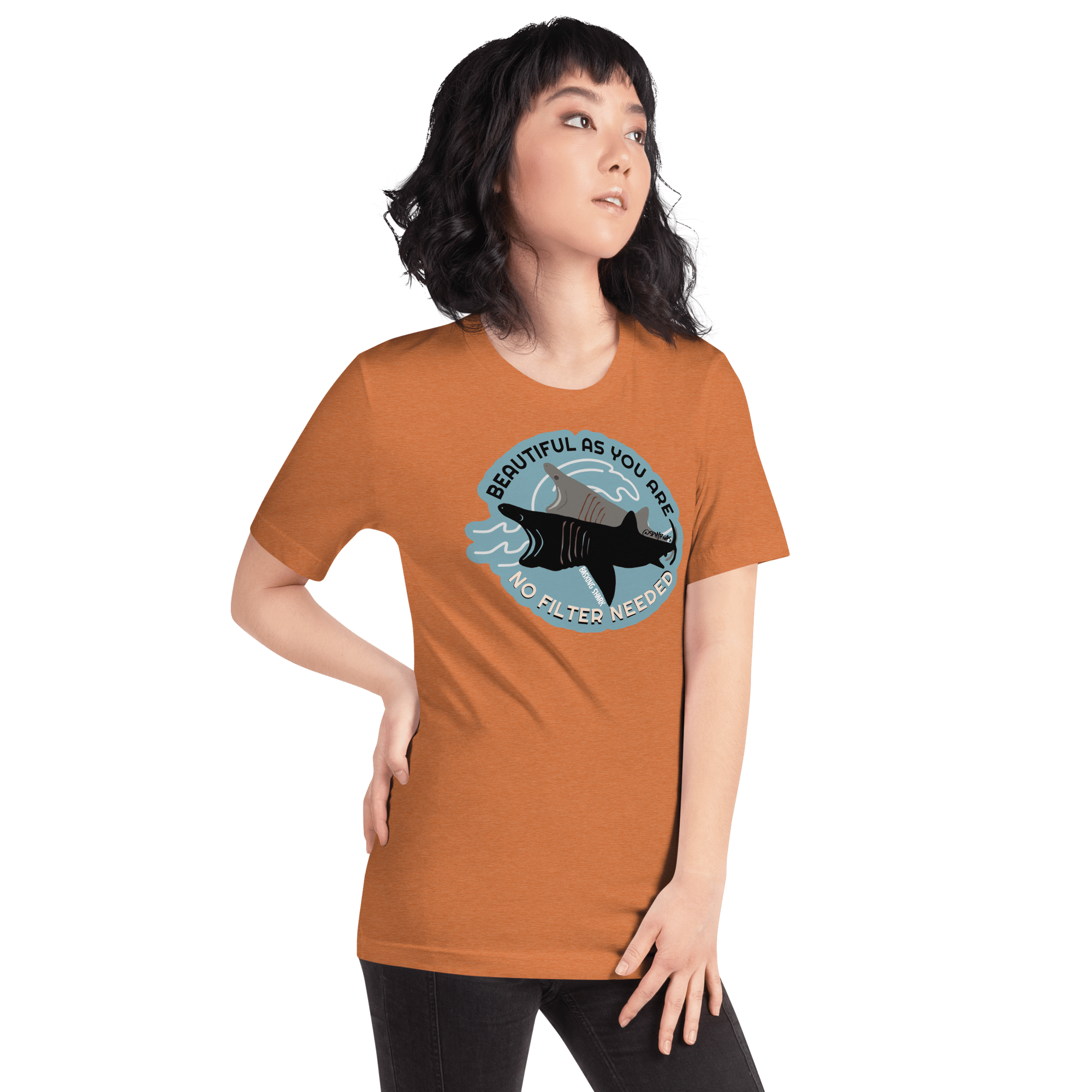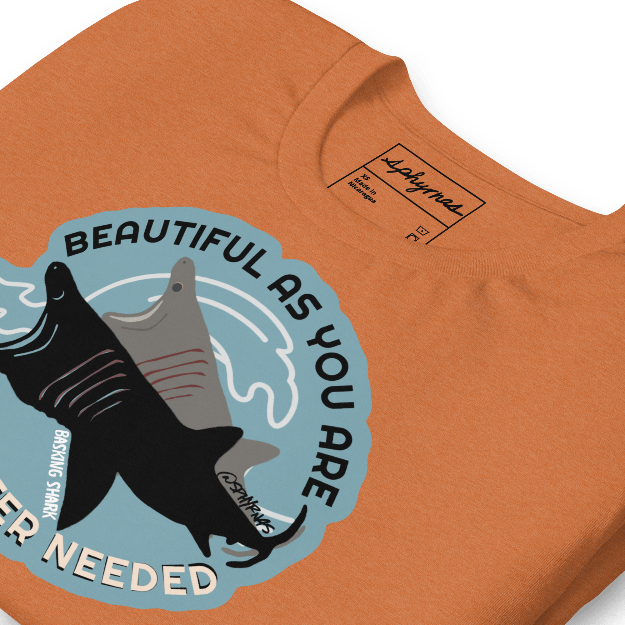 A sharky tee to bring a smile to others as well as a reminder that you're beautiful just as you are- and with basking sharks on the front?! You know it's gonna be your new favorite.