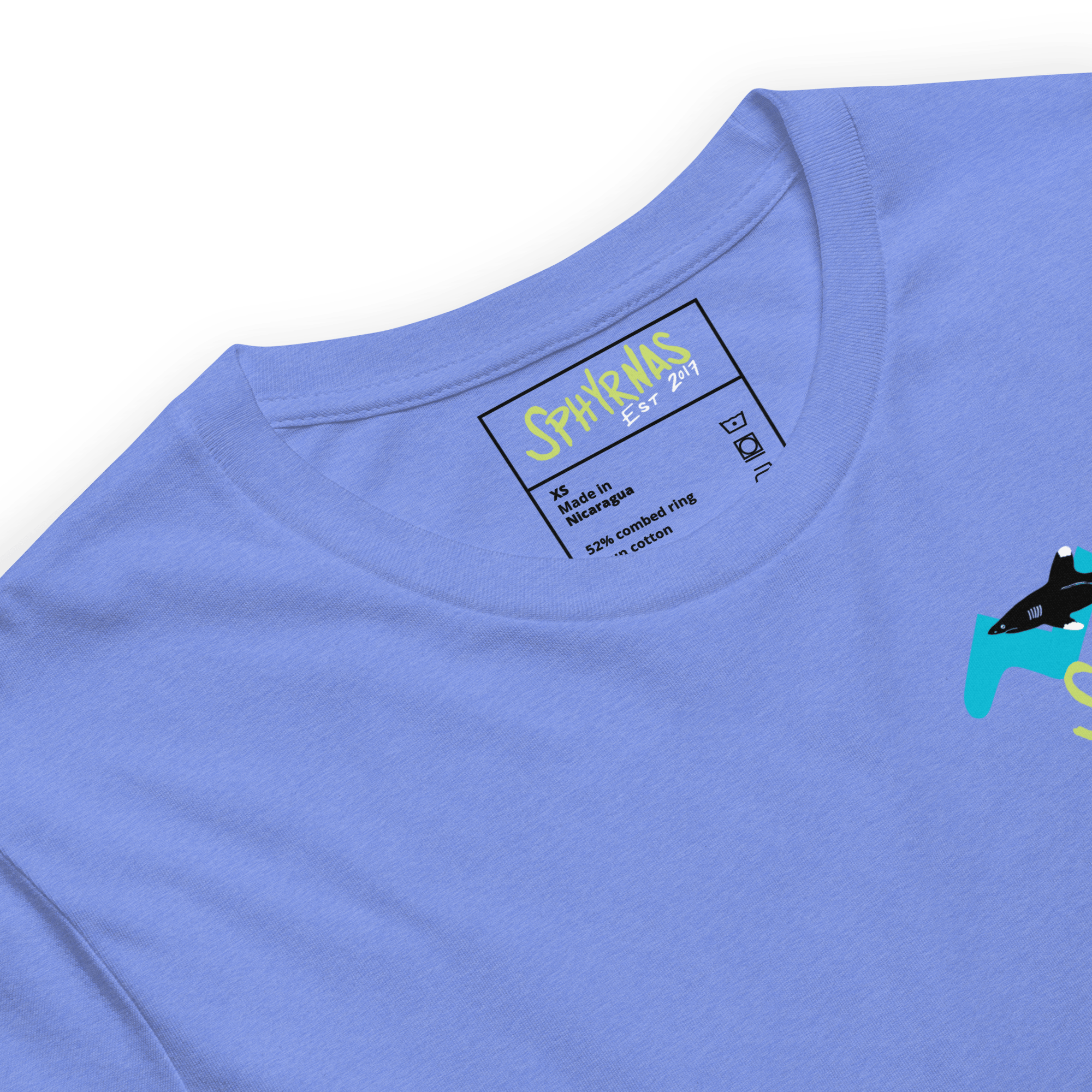 Catch some waves as you serve sharky looks this summer with our new, surfer vibes inspired, tee featuring a shark that's always on the move- the oceanic whitetip!